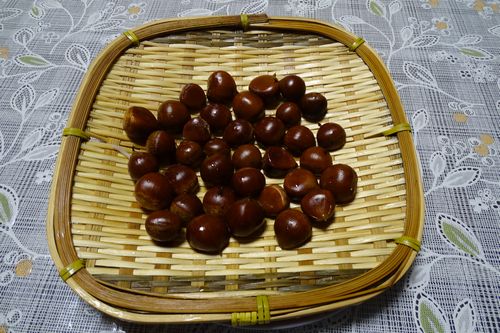 榛名・湖畔の宿駐車場から杖ノ神峠登山口に向かって歩き出しました。林道はトラックも走れるほど広い道ですが車の通行は少ないようでした。杖ノ神登山口は舗装された広い場所で、隅っこに富士山ナンバーの乗用車が1台ありました。登山道は尾根沿いで途中に杏ヶ岳(1292m)より高い鷲ノ巣山(1319m)があり厳しいアップダウンの連続でした。登山道と2つの頂上は大きな立木に囲まれて眺望は最悪でしたが、おかげで日陰と涼しい風に恵まれ、今年の猛暑も忘れ山栗拾いに没頭しました。