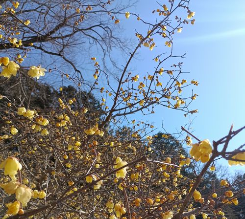 昨年11月は山下り、12月は中止、今年1月は新年会と山に登ってないので、今回は低山とはいえ息切れに心配だったが、何とか登り切った。気候は4月並みで風もなく青空の下を会の人とおしゃべりしながら登った。山頂ではちょっと遅めだったが蝋梅が咲き誇っていた。