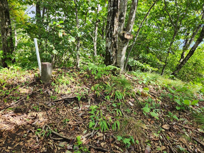 写真左:鷲巣山頂は丁八〇 写真右:李が嶽山頂と石祠
